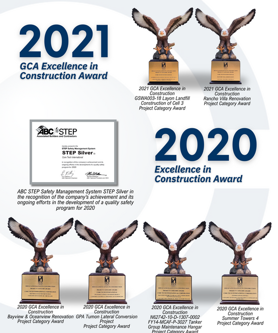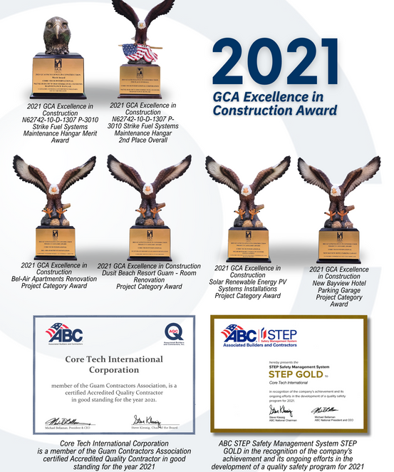 Core Tech has developed a solid reputation of delivering complex projects on time and within budget. It is licensed by the local government of Guam to engage in business as a general contractor for almost all construction classifications, including general engineering contracting, general building contracting, and specialty contracting (Class A, Class B, Class C1 through C58 and C68).